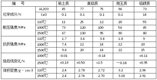 無(wú)水泥澆注料的主要性能