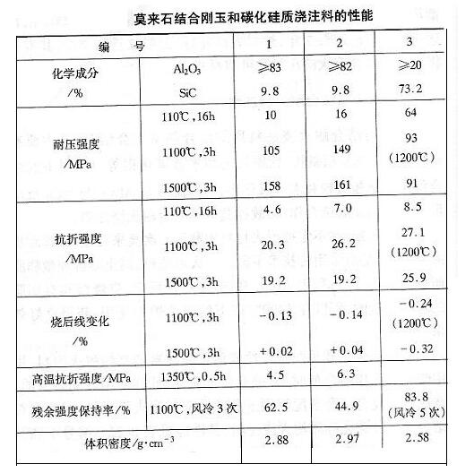 莫來石結(jié)合剛玉和碳化硅質(zhì)澆注料的性能