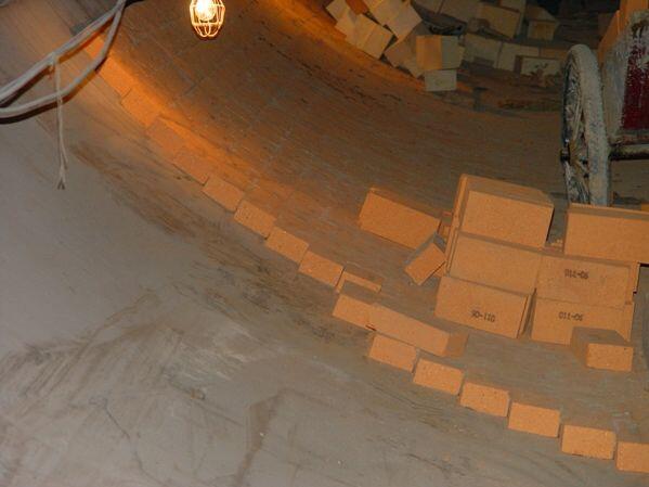 回轉(zhuǎn)窯補(bǔ)窯簡便的方法,用于回轉(zhuǎn)窯磚襯局部掉磚或嚴(yán)重侵蝕的修補(bǔ)。該方法通過將修補(bǔ)部位的雜物清理干凈,露出潔凈的磚茬,并在窯筒體上鋪塑料布或牛皮紙,再在磚茬處涂上PA—80膠,然后直接搗打加磷酸的PA—80膠耐火混凝土或鋼纖維混凝土。用該方法補(bǔ)窯,修補(bǔ)的窯襯壽命長、烘烤時間短、施工簡單、易操作,尤其適合于損壞面積小于2m.1.一種用于修補(bǔ)回轉(zhuǎn)窯磚襯局部掉磚或嚴(yán)重侵蝕的回轉(zhuǎn)窯補(bǔ)窯方法。