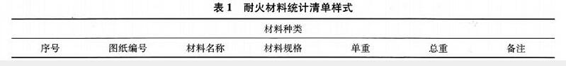 設(shè)計(jì)方在完成熔窯設(shè)計(jì)之后要進(jìn)行材料統(tǒng)計(jì)清單的制作。材料統(tǒng)計(jì)清單直接影響到材料的訂貨、包裝、倉(cāng)儲(chǔ)以及出庫(kù),是建設(shè)方用于熔窯材料招標(biāo)和材料供應(yīng)方用于材料生產(chǎn)、包裝的依據(jù)。耐火材料統(tǒng)計(jì)清單樣式應(yīng)當(dāng)包含材料種類、圖紙編號(hào)、材料名稱、材料規(guī)格、單重、總重等類別(如表1),這樣的清單能夠較為方便地讓建設(shè)方、材料供應(yīng)方、施工方根據(jù)圖紙中的尺寸合適材料的規(guī)格、單重、總重是否正確。
