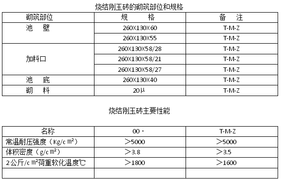 1.在玻璃頁面處使用燒結(jié)剛玉磚時應(yīng)用風(fēng)冷卻,使池壁外表面溫度維持在50~100℃,以保證使用效果。在1400℃以下工作可采用保溫措施,如池窯底部。