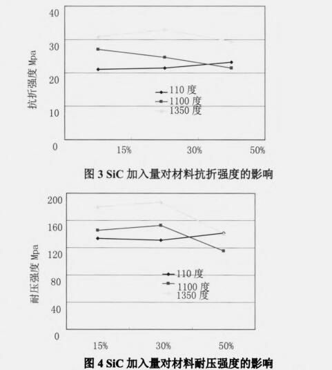 SiC顆粒表面被氧化后形成一層Si02膜,這層膜起了保護內(nèi)部Sic免被氧化的作用。系統(tǒng)中SiC強烈被氧化的溫度范圍大致在1100℃~1300℃之間。理論上講,由于材料在氧化過程中會吸收3/2的02,而放出1個CO,因此材料的重量增加,所以體積密度在1350℃會有一定的增加。而A,B兩組材料由于SiC含量相對少一些,體積密度增加的趨勢不明顯。