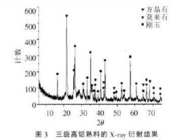 我國有豐富的鋁礬土資源,目前已探明的儲量超過20億t,居世界前列。因此礬土熟料的價格相對于剛玉、莫來石、紅柱石要低,而且常用的山西孝義特級、二級及三級高鋁熟料雜質(zhì)含量較低,見圖1~4。由于以上4種高鋁熟料礦物相主要為剛玉相及莫來石相,不含有低熔點的晶相,因此以上4種原材料都適合作為軋鋼加熱爐的原材料。