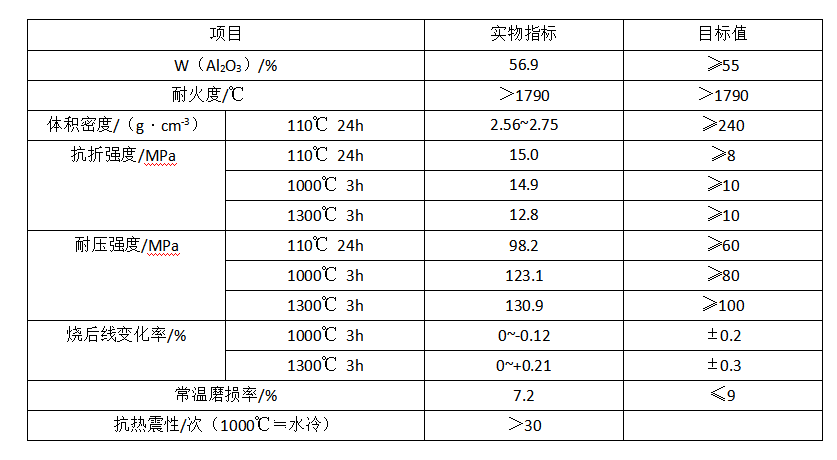 1:直接還原煉鐵回轉(zhuǎn)窯用澆注料的性能