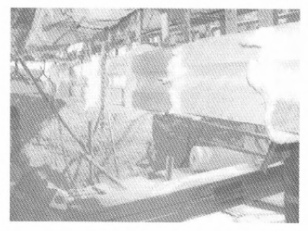 2010年3月大修中,連接部位采用現(xiàn)場(chǎng)澆注方法。檢修和施工時(shí)間都提前至窯頭罩和篦冷機(jī)澆注料澆注之前,連接部位錨固件高度350mm,用液化氣烘烤澆注料。圖3是現(xiàn)場(chǎng)烘烤澆注料的情形。