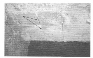 圖7為使用7個(gè)月后的情況。圖中箭頭所指方向?yàn)轭A(yù)制件之間預(yù)留的膨脹縫隙,可以看出膨脹縫隙,可以看出膨脹縫隙各不相同,當(dāng)時(shí)在寬的縫隙中填塞了火棉和火泥。