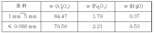 對廢鋼包澆注料的回收,選擇回收的廢鋼包澆注料原材質(zhì)為鋁鎂尖晶石澆注料,該澆注料是由特級鋁礬土顆粒料、鋁鎂尖晶石細粉、鎂砂粉、硅灰等優(yōu)質(zhì)耐火材料原料組成,在鋼包上使用后,材質(zhì)無多大變化,采用合理的工藝進行回收利用是可行的。