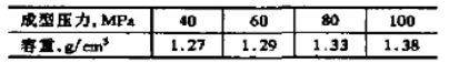 由表1可以看出,成型壓力從40MPa增加到100MPa,容重增加0.lg/cm3左右。為了增加結(jié)合強(qiáng)度,調(diào)整添加劑加入量,采用80MPa壓力為宜。