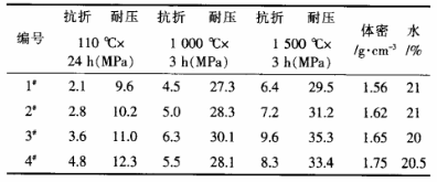 (2)輕質(zhì)澆注用微粉和結(jié)合劑合理調(diào)整,對產(chǎn)品的主要性能產(chǎn)生影響較大。