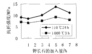 圖1 鉀長(zhǎng)石加入量對(duì)抗折強(qiáng)度的影響