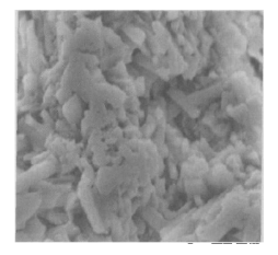 圖3是對(duì)試驗(yàn)中性能好的試樣進(jìn)行能譜分析、表明基質(zhì)中主要物相為莫來(lái)石,此外還有少量的鈣長(zhǎng)石。莫來(lái)石呈針狀,交錯(cuò)連接在一起。基質(zhì)組成中CaO、Al2O3和SiO2的含量滿足生成莫來(lái)石的條件,所以可以推斷在高溫時(shí)除了生成液相外,還有莫來(lái)石相存在。因?yàn)橐合嗟某霈F(xiàn)溫度低于莫來(lái)石的生成溫度,所以在基質(zhì)中莫來(lái)石的生成應(yīng)該從液相中析晶。從圖4的顯微照片中可以看出試樣中生成了大量針狀莫來(lái)石晶體。