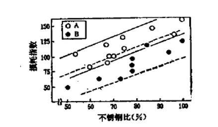 圖2 不銹鋼與K-BOP爐熔池部位損耗之間的關(guān)系