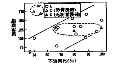 圖1 不銹鋼與K-BOP爐渣線部位損耗之間的關(guān)系