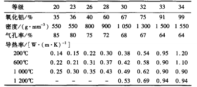 33級(jí)和34級(jí)隔熱磚由合成鋁氣泡制成。含有密閉的氣孔,其導(dǎo)熱性不會(huì)隨著溫度降低,但升到非常高的平均溫度時(shí)其導(dǎo)熱性再度攀升,如圖4和表1所示。