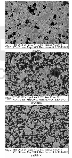 圖4 燒后試樣Q、D6和DC的顯微結(jié)構(gòu)