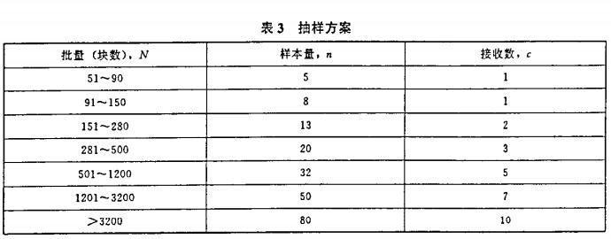 6.3 尺寸和外觀的抽樣方案按表3的規(guī)定進(jìn)行。