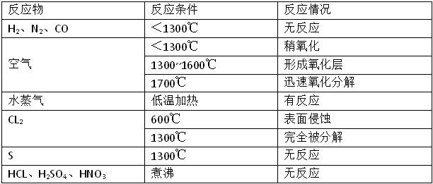 SiC 與某些物質(zhì)的反應(yīng)情況見(jiàn)表 1
