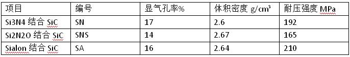 采用反應(yīng)燒結(jié)法,分別指的Si3N4結(jié)合SiC、Si2N2O結(jié)合SiC及Sialon結(jié)合SiC試樣,試樣尺寸φ20X30,內(nèi)孔φ7.其物理性能如表1所示。
