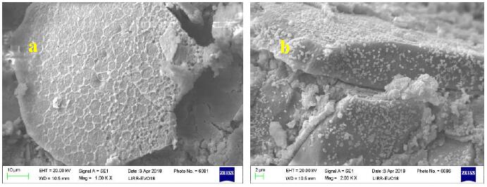 圖2是氧化250h試樣的顯微結(jié)構(gòu)照片。圖2a是SiC細(xì)粉被氧化形成的一簇一簇的SiO2,像是被氣體均勻的蝕刻了一樣,氧化膜不完整,呈孤島狀分布。圖2b是0.3mm的SiC粒子表面生成了約4μm的氧化層,對(duì)應(yīng)體積膨脹最大可能與骨料發(fā)生氧化有直接關(guān)系。該階段水泥的水化已經(jīng)完成,結(jié)合水排出對(duì)水蒸氣滲入的阻力消失,主要反應(yīng)為SiC的氧化。反應(yīng)速度可能處于化學(xué)反應(yīng)控制階段。