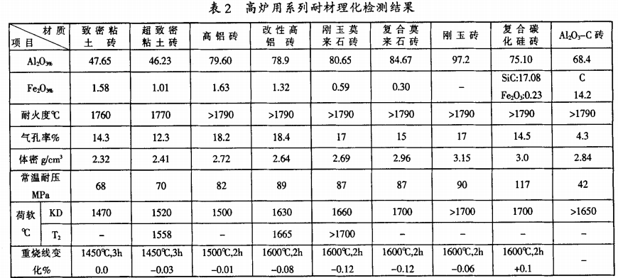 根據(jù)現(xiàn)場實際情況。冶煉礬鈦磁鐵礦的高爐爐底部位。實際溫度在1420℃左右,爐缸的渣液面溫度在1550℃左右或更高一點,通過實驗可以看出,選用粘土磚作爐底用磚仍是可取的,粘土磚只存在侵蝕現(xiàn)象,進一步提高材料的純度和致密程度對提高抗蝕性是非常有利的。超致密粘土磚在1450℃,3h的條件下,最大侵蝕速率僅0.8mm/h,滲 透速率為0而高鋁磚在該溫度條件下同樣為0.8mm/h,而滲透速率為2.0mm/h,因而超致密粘土磚作為爐底材料具有很強的優(yōu)勢。爐缸部位渣液溫度高達1550℃以上,剛玉莫來石磚、復合莫來石磚、復合碳化硅磚都具有較好的抗侵蝕性和滲透性。剛玉莫石磚價格昂貴,抗渣性能并不比復合莫來石磚優(yōu)越;高鋁磚在1550℃靜態(tài)的條件下,侵蝕和滲透現(xiàn)象相當嚴重剛玉磚由于氣孔率高,結(jié)構(gòu)不致密,滲透現(xiàn)象嚴重;AL2O3—C磚抗蝕性良好,但由于存在氧化現(xiàn)象,制品的結(jié)構(gòu)遭到破壞,強度低?乖圆睿o爐效果差,也不可取。