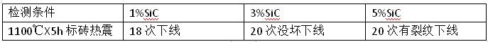 SiC加入量對(duì)其抗熱震穩(wěn)定性的影響?梢钥闯鲭S著SiC加入量的提高其熱震穩(wěn)定性有一定的提高。這是由于SiC有很高的導(dǎo)熱系數(shù),SiC所具有的不高的熱膨脹系數(shù)和高的導(dǎo)熱系數(shù)是SiC質(zhì)耐火材料熱震穩(wěn)定性優(yōu)異的原因。