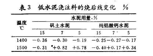 圖2為低水泥澆注料與普通澆注料、粘土澆注料強(qiáng)度變化的比較?梢,低水泥澆注料常溫強(qiáng)度較高,而中溫強(qiáng)度也不降低。表2表明了不同澆注料高溫?zé)釕B(tài)抗折強(qiáng)度的對比,可見低水泥澆注料的高溫抗折強(qiáng)度為普通澆注料的2~3倍,比粘土的也提高了許多。著說明低水泥澆注料兼有普通澆注料和粘土澆注料兩者的優(yōu)點(diǎn),它在各種溫度下都有高強(qiáng)度的特點(diǎn),這對于溫度高,出鋼頻繁,鋼錠和鉗吊經(jīng)常碰撞的場合,無疑是有好處的。