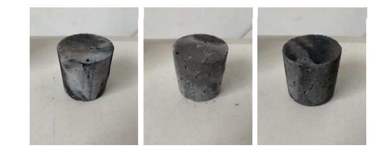 分析認(rèn)為,不同于純H2還原,在混合氣氛下,耐火材料的受損程度取決于還原反應(yīng)與滲碳反應(yīng)的共同作用,耐火材料中的Fe2O3會(huì)與H2和CO反應(yīng),被還原成FeO和單質(zhì)Fe,進(jìn)一步催化CO發(fā)生析碳反應(yīng)析出碳(2CO(g)→CO2(g)+C(s)),CO在制品表面及內(nèi)部(通過(guò)氣孔進(jìn)入)發(fā)生歧化反應(yīng),產(chǎn)生碳沉積,碳沉積伴隨大量的體積膨脹導(dǎo)致耐火材料的結(jié)構(gòu)受到嚴(yán)重破損,進(jìn)而嚴(yán)重影響到耐火材料的相關(guān)服役性能。這也是導(dǎo)致含CO還原氣氛下耐火材料性能下降更為明顯的主要原因。如圖所示,被還原后的高鋁澆注料試樣出現(xiàn)部分破損開(kāi)裂的現(xiàn)象也證實(shí)了這一點(diǎn)。