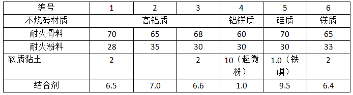 表1-1磷酸(鹽)不燒磚的配合比(%)